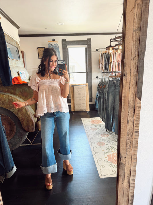 Marci Eyelet Button Top