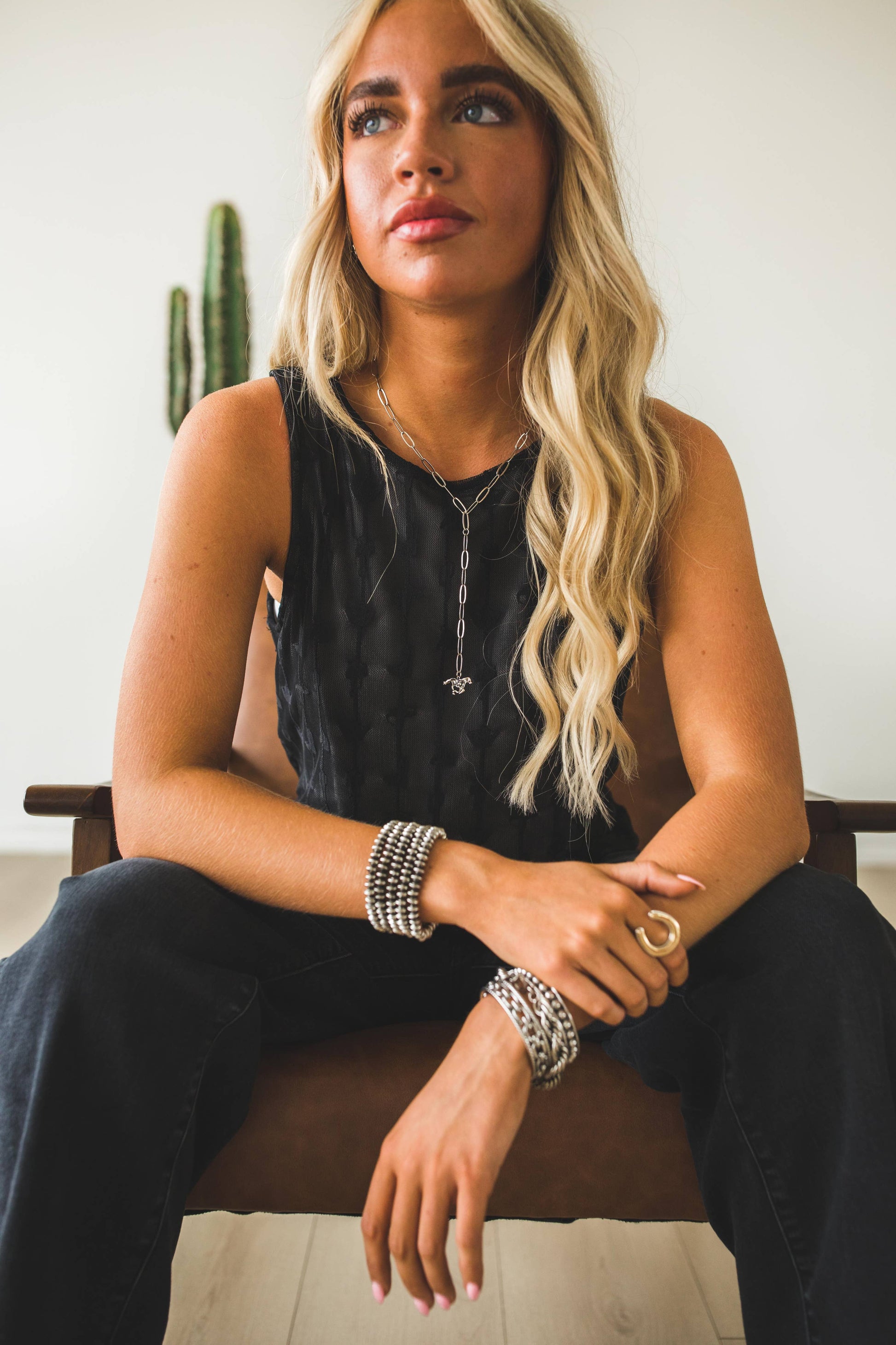 18K White Gold or Yellow Gold Plated Burnished 5 Disc Bead Stretch Bracelet Set
