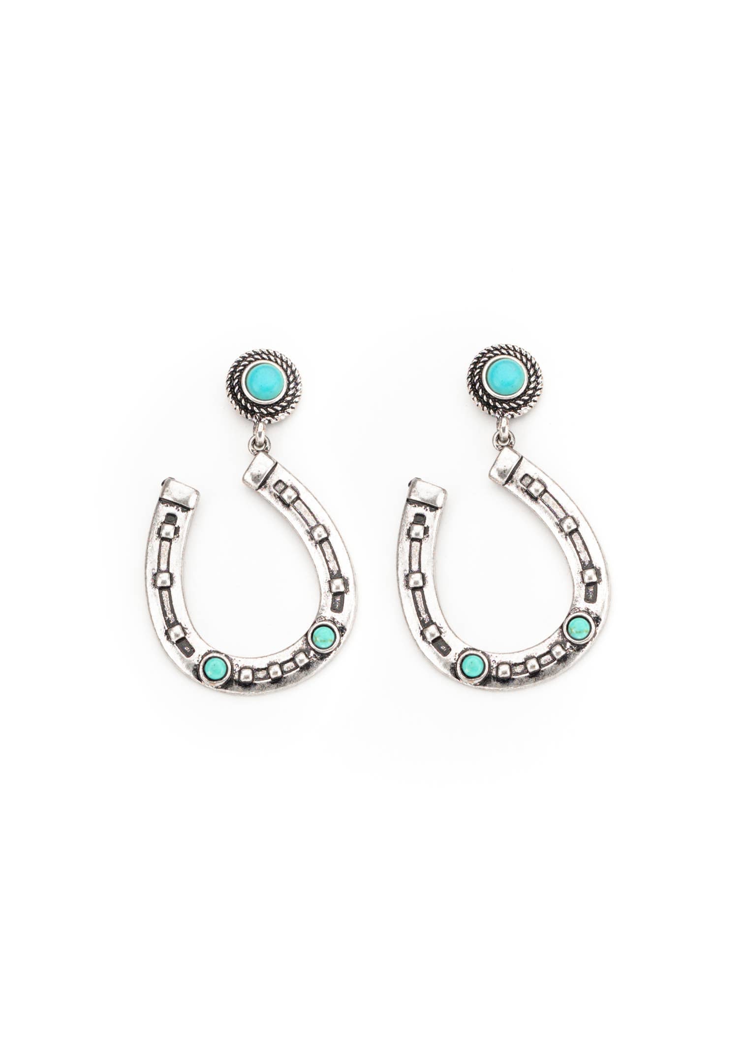 2.5" Burnished Silver and Turquoise Horseshoe Earring