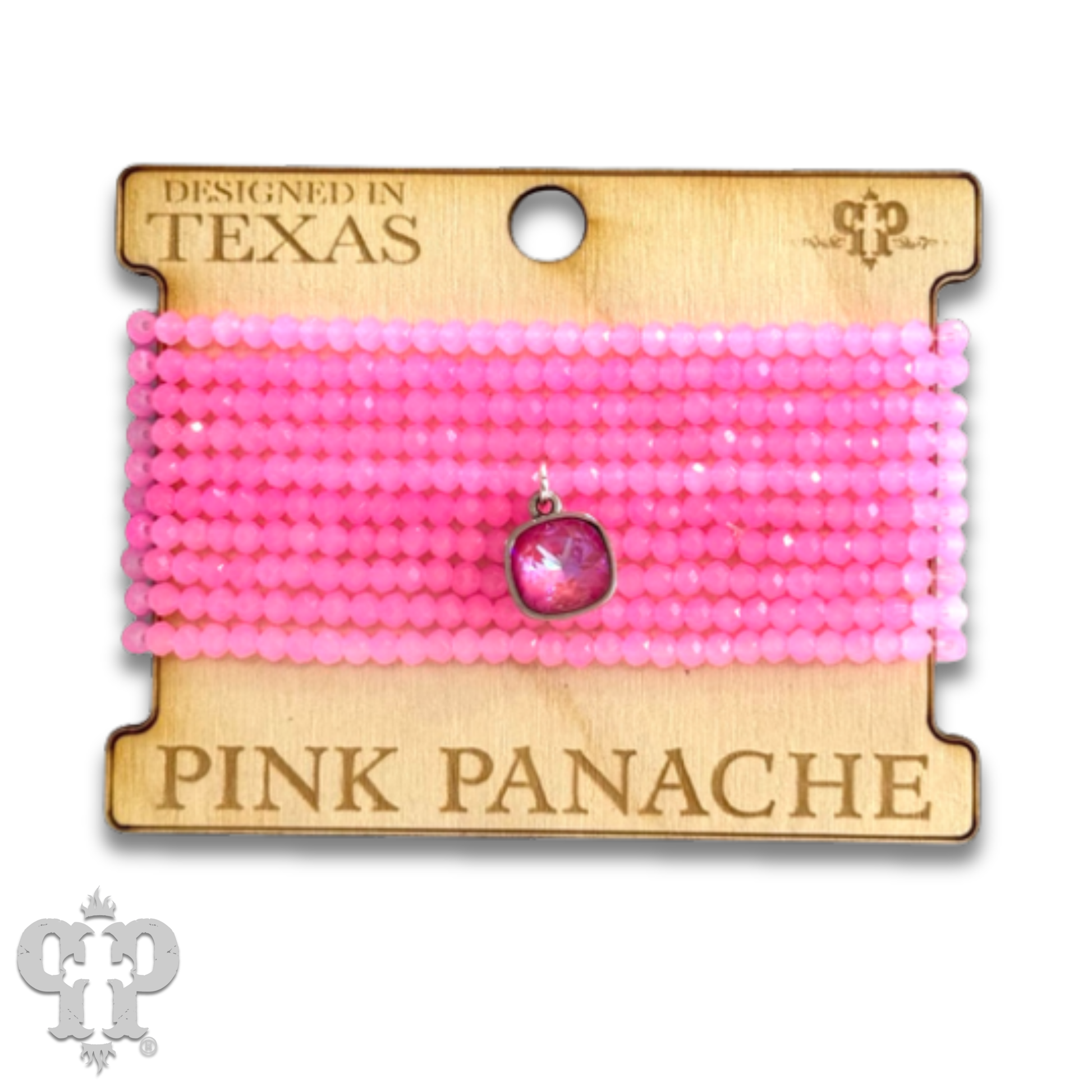 Get ready to jazz up your wrist with this fabulous bracelet set, featuring a whopping ten strands of bold beads and a stunning Austrian crystal charm. Perfect for a comfy, stretchy fit. Product Details * Small faceted beads, nine strands * Austrian crystal charm * Crystal setting is custom made for pink Panache in the USA * One size fits most.